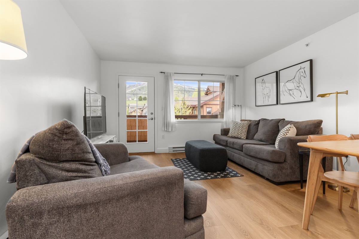 *Discounts for 7+ night stays Welcome to First Track 4305 brought to you by Vacation Rental Co. This beautifully updated 2-bedroom condo offers mountain views, modern comforts, and unbeatable access to Steamboat’s best trails and resort amenities. Whether you're here to ride, ski, soak, or play pickleball, this thoughtfully appointed retreat is the perfect basecamp for adventure. Step into Style & Comfort With brand-new flooring and designer touches throughout, this condo delivers a modern yet cozy vibe. Kick back on the plush sleeper sofa, stream your favorite shows on the smart TV, or take in mountain views from the private balcony. The space is bright and peaceful, with natural light pouring in. Play Like a Local Whether you're rallying on the tennis courts or smashing your way through a pickleball match, you'll love being just steps from the Steamboat Tennis & Pickleball Facility—a top-notch complex open year-round. After your match, stroll home to unwind with a refreshing drink on the balcony or refuel with a homemade meal in the full kitchen. With stainless steel appliances, generous counter space, and all the essentials, it’s the perfect setup for both recovery snacks and hearty post-game dinners. HOUSE ARRANGEMENT – Unit on 3rd…