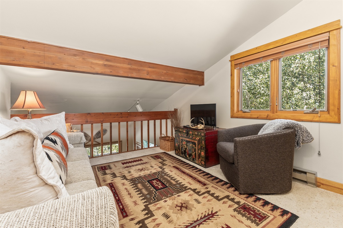 Loft Bedroom – Open loft with queen sleeper sofa, HDTV