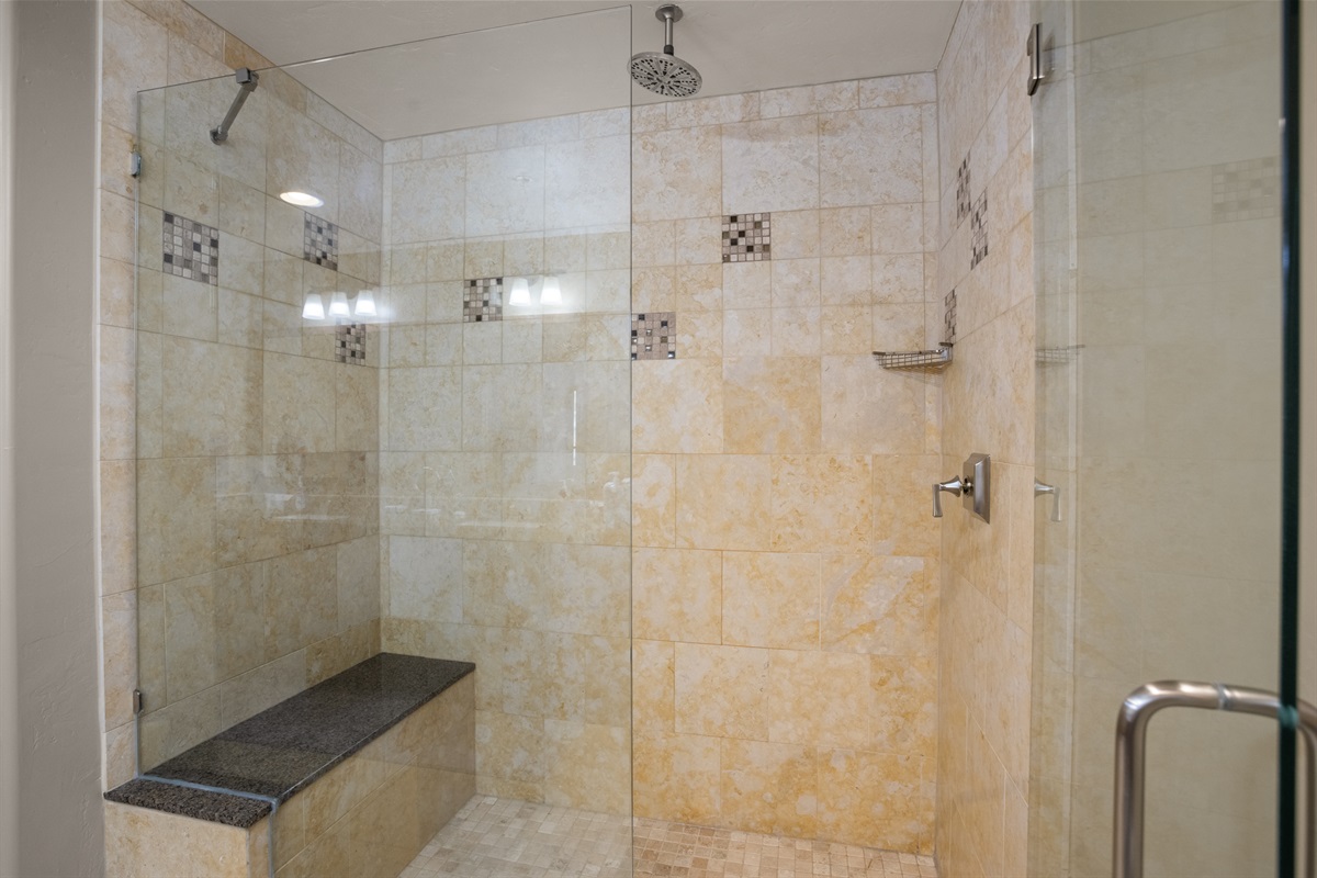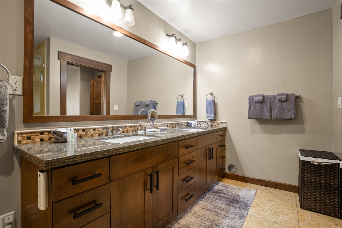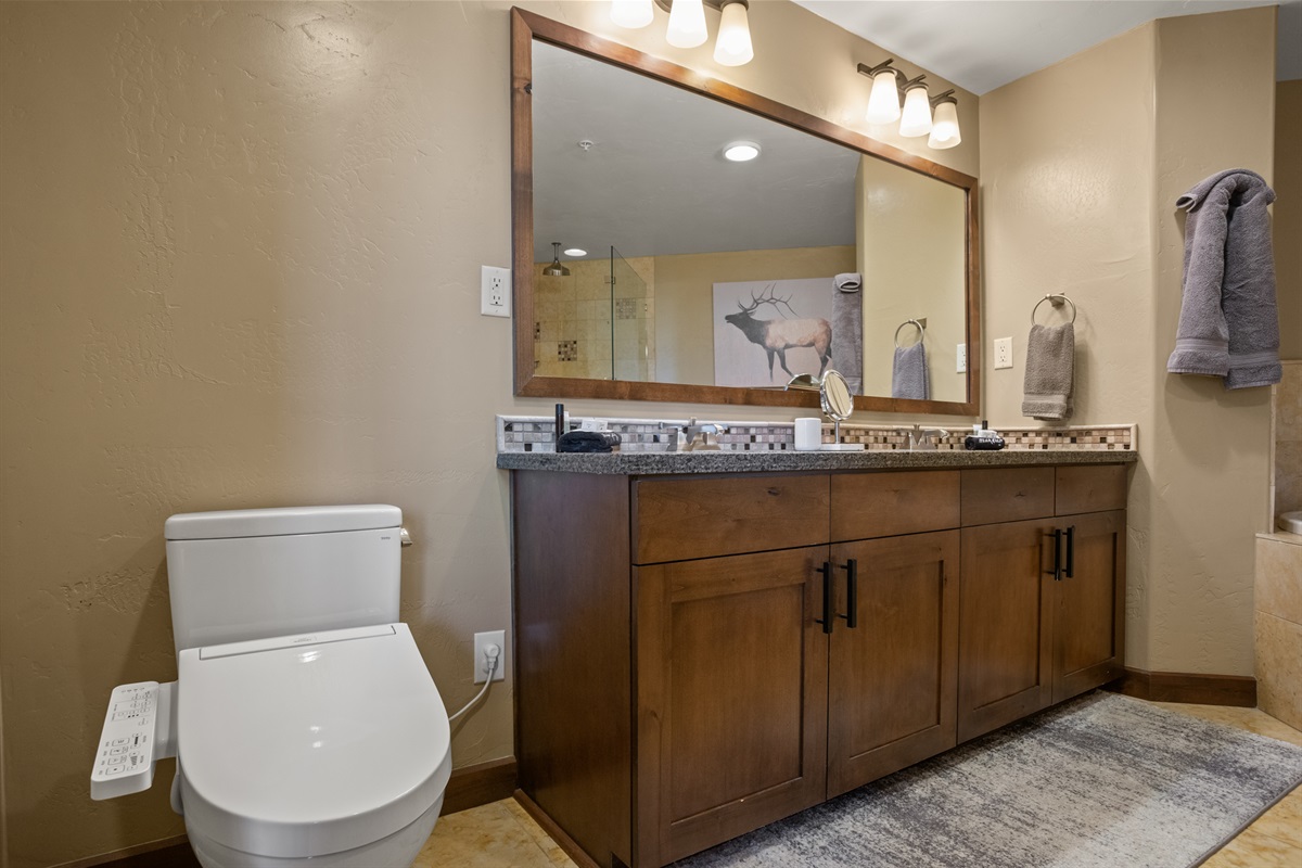 Discover unparalleled comfort in two lavish King bedrooms, each featuring HDTVs and spacious ensuite baths adorned with bidet-equipped toilets, high-end walk-in showers, and one with a decadent soaking tub. The 3rd bedroom offers versatility with a Twin over King Bunk, a sizable HDTV, a dedicated workspace with an office chair, and an adjoining full bathroom.