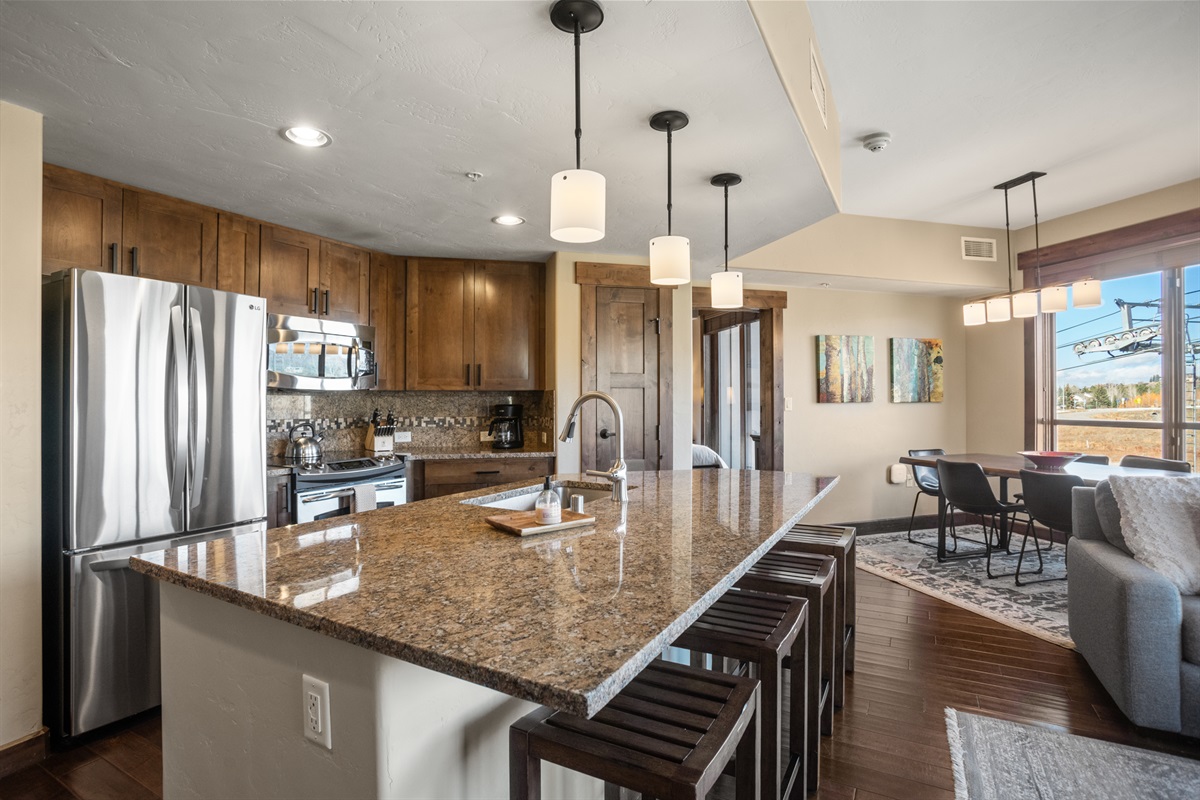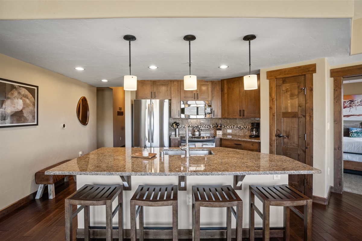 Dining Area – Table for 6, Bar with barstools for 4
