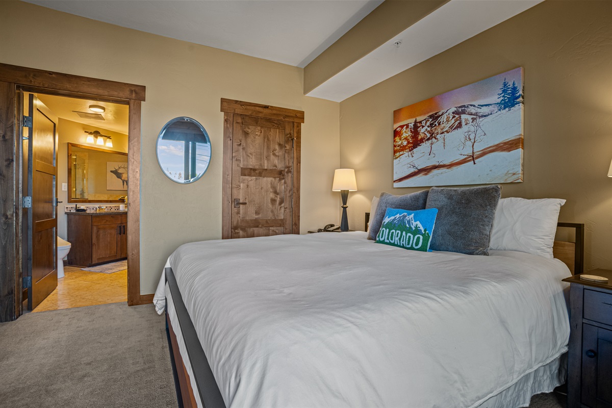 Bedroom#2 – King Bed, HDTV, Ensuite Bathroom (bidel equipped toilet, walk in shower)
