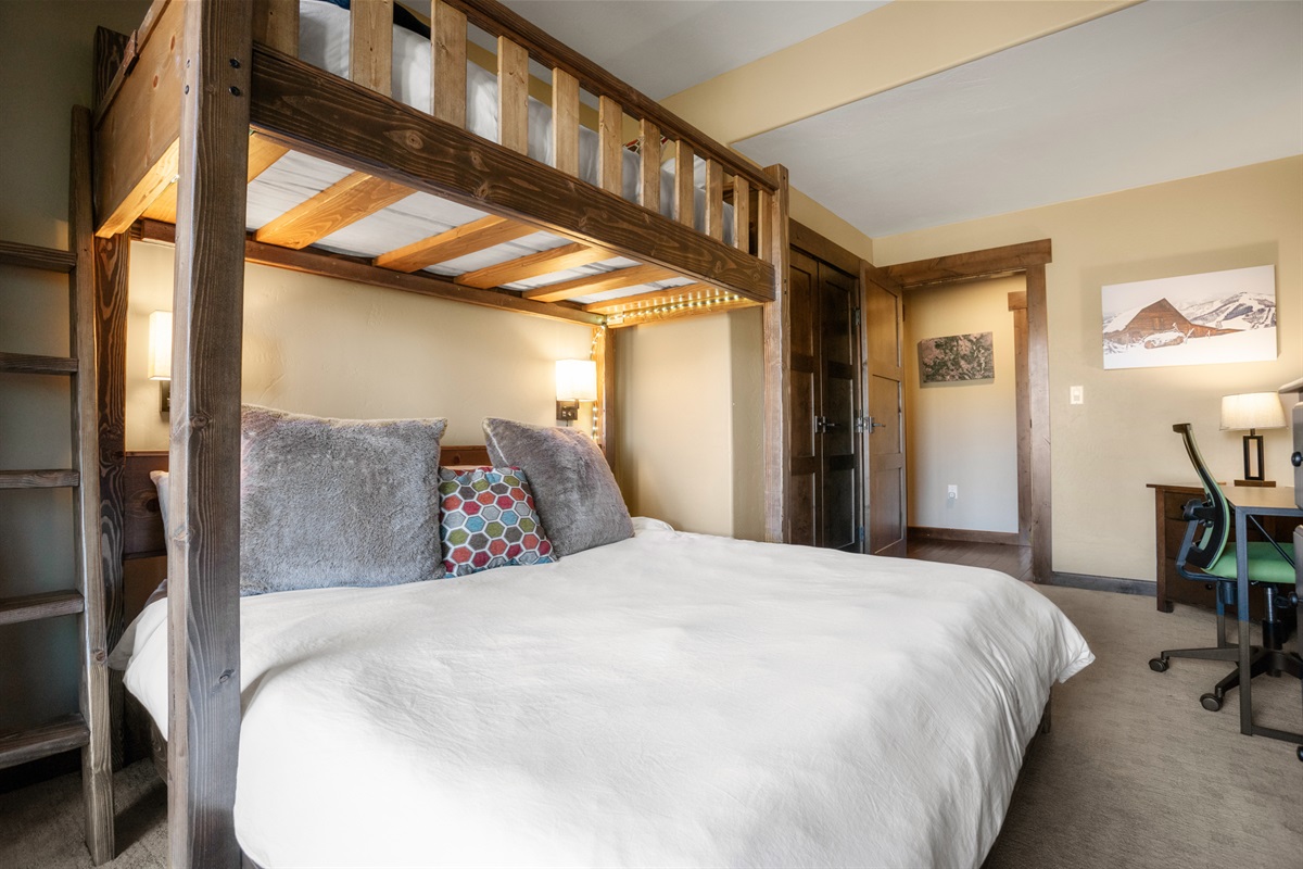Bedroom #3 – Twin over King Bunk, HDTV, Adjacent bathroom (tub/shower combo)