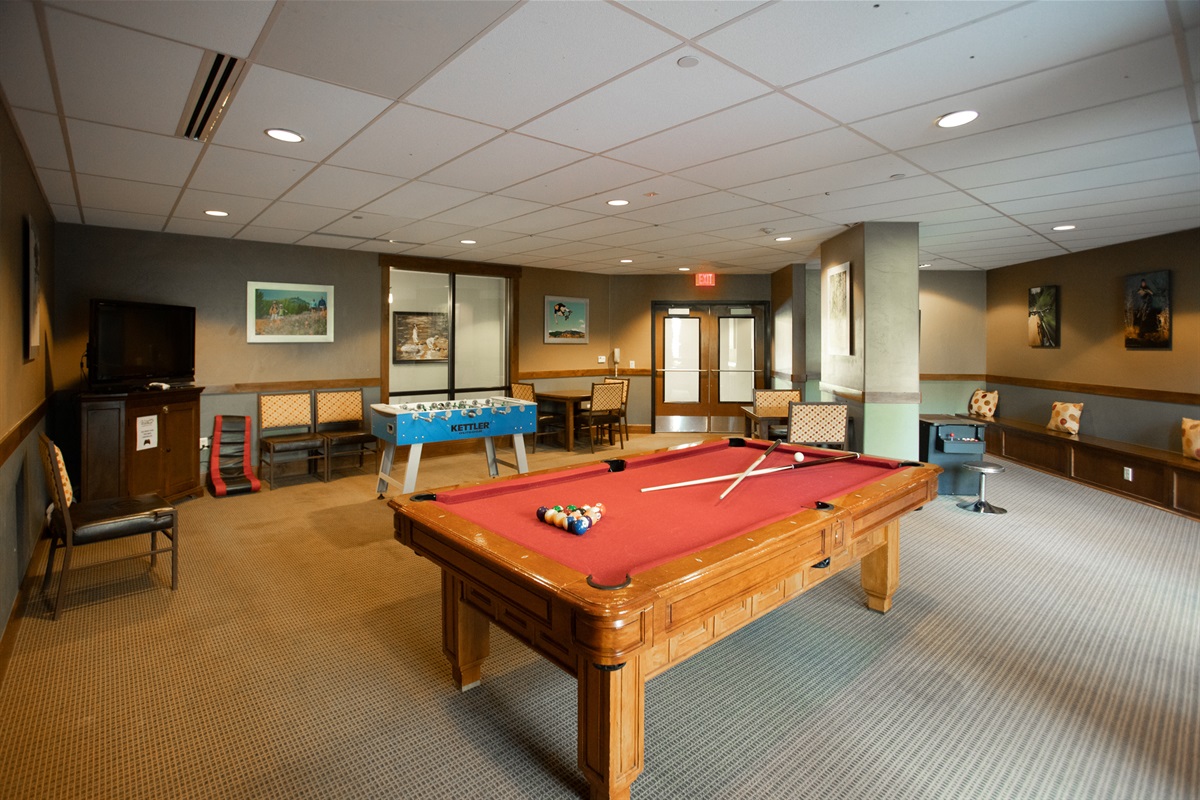 — Shared game room with pool/foosball/HDTV’s