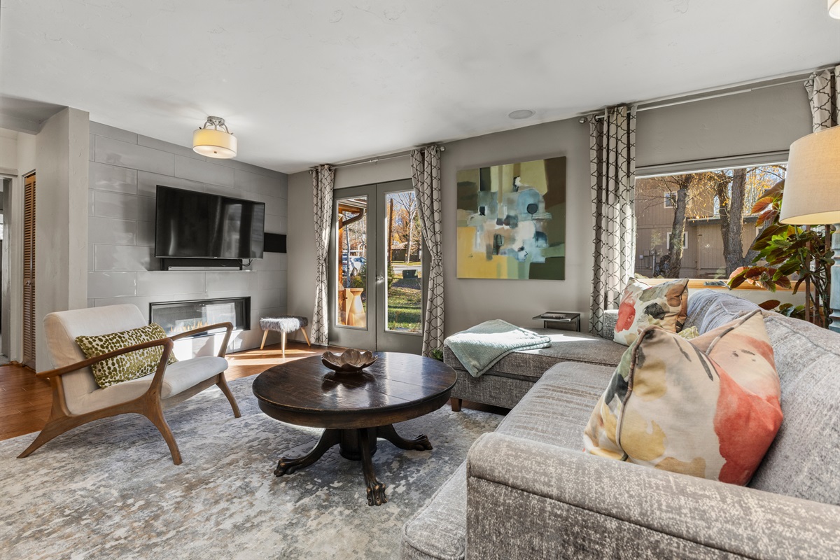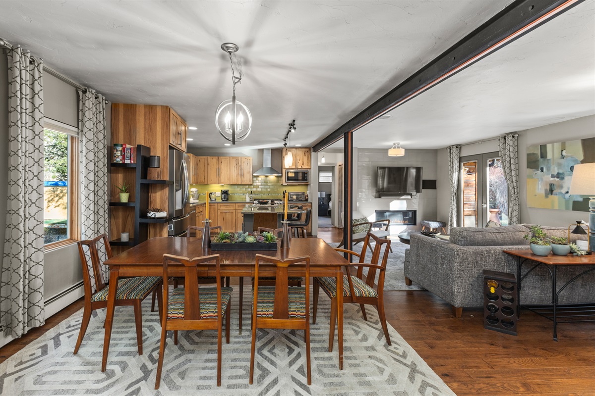 Step into a bright, thoughtfully designed home featuring an updated kitchen with gas stove, stainless steel appliances, and plenty of counter space for preparing meals after a day on the mountain. The open living area offers cozy seating, a Smart TV, and access to the private yard—perfect for enjoying Steamboat’s sunny days or cool evenings under the stars.